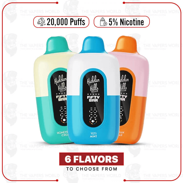 At Vape Nebula, find the Hidden Hills x Fifty Bar 20K Disposable Vape and other vaping products. We offer fast shipping across the USA and free shipping on orders over $250.