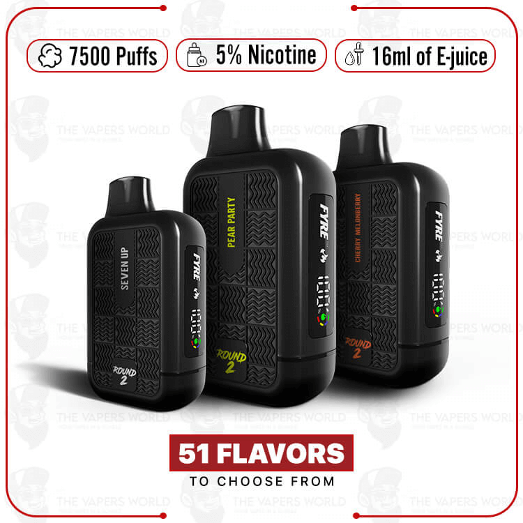 The Tyson 2.0 7500 Round 2 Disposable offers up to 7,500 puffs per device. It holds 16mL of e-liquid and uses Fyre Mesh Coil technology for consistent flavor. The 650mAh rechargeable battery supports long use. An integrated LCD screen displays battery and e-liquid levels. USB Type-C charging is included for quick and easy power replenishment.